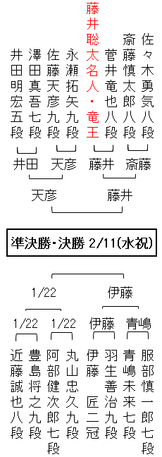 第19回 (2026年初頭に本戦トーナメント) 朝日杯将棋オープン本戦トーナメントのトーナメント表(対局日程つき)。