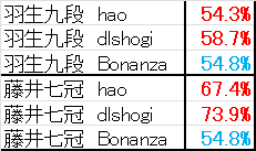 bonanza | +528 | (羽生優勢) |