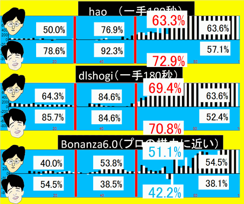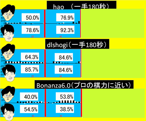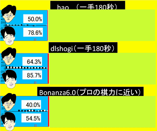 | dlshogi | +68 | (互角) |