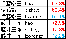 | dlshogi | +164 | (伊藤指しやすい) |