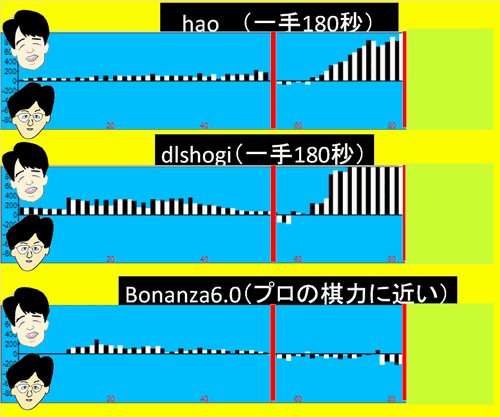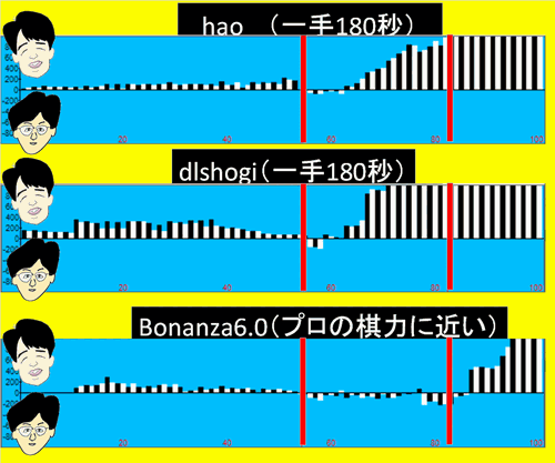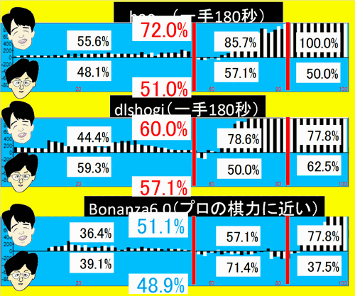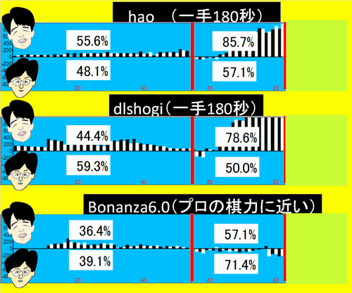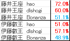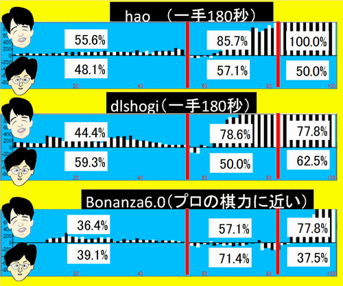 2025年10月7日の第73期王座戦五番勝負第4局・藤井聡太王位/七冠 vs 伊藤匠叡王の評価値グラフと両対局者のAI一致率を序盤・中盤・終盤ごとに。hao、dlshogi、Bonanza6.0で。