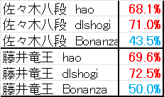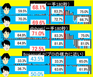 | dlshogi | +756 | (佐々木優勢) |