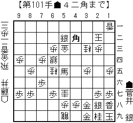 bonanzaの読み:△同銀(55)▲4一角打△1三玉(23)▲1六歩(17)△5