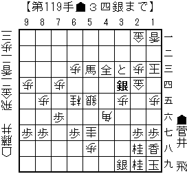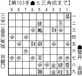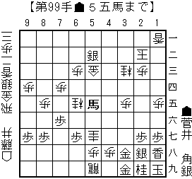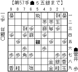 bonanzaの読み:▲同銀(39)△3九銀打▲6三馬(53)△4八成桂(57)▲