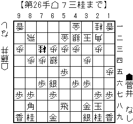 haoの読み:▲2六歩(27)△3二銀(31)▲2五歩(26)△7四歩(7