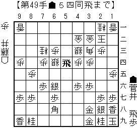 haoの読み:▲3八銀(39)△3九銀打▲2六金打△5三飛(51)▲4九香
