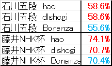 2026年1月25日放送の第75回NHK杯将棋トーナメント・藤井聡太NHK杯 vs 石川優太五段の評価値グラフと両対局者のAI一致率を序盤・中盤・終盤ごとに。hao、dlshogi、Bonanza6.0で。