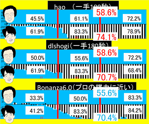第75回NHK杯 藤井vs石川 評価値グラフとAI一致率(序盤・中盤・終盤ごと)