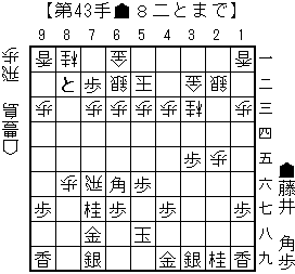 haoの読み:▲2五歩(26)△3二金(41)▲7八金(69)△8八角成(