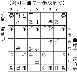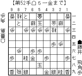 haoの読み:△5二玉(51)▲3四飛(24)△3三角(22)▲7七角(8