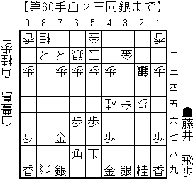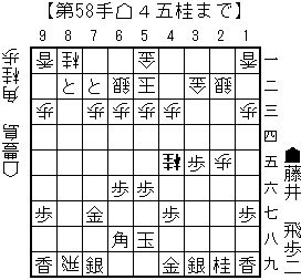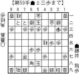 haoの読み:△同歩(23)▲同飛(28)△4二玉(51)▲5八玉(59)