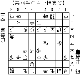 bonanzaの読み:▲4一龍(31)△6三玉(52)▲5五桂打△7四玉(63)▲