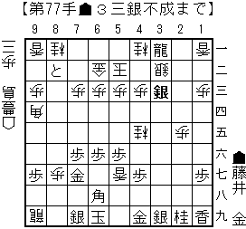 haoの読み:△3二銀(23)▲3三銀成(42)△同銀(32)▲3二金打△