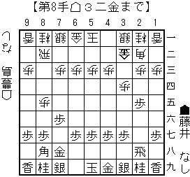 bonanzaの読み:△3二銀(23)▲8七金(77)△6四歩(63)▲3四歩打△