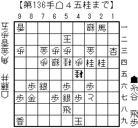 まで136手で藤井名人の勝ち。