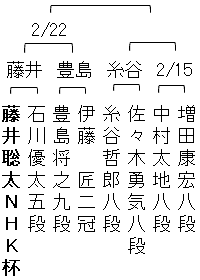 Youtube 虚偽申告削除裁判←棋譜利用動画裁判 [Youtube] 自称元奨励会員←ニセ者に要注意! 無課金ブラウザゲームで脳トレ&リフレッシュ 第75回(2025年度) NHK杯将棋トーナメント表・放送日程 NHK杯 X Facebook はてブ LINE コピー 2026.01.262026.02.12 第75回(2025年度)NHK杯将棋トーナメントのトーナメント表と放送日程。 ベスト8から ベスト8まで 藤井竜王・名人/六冠、今後の対局予定 ハマりすぎ注意!スイカマスターゲーム Yourtubeで遊び方・コツを見る 完全無料無課金ゲームで脳トレ&リフレッシュ