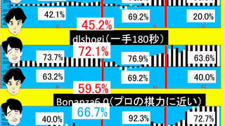 2025年10月31-11/1日の第38期竜王戦七番勝負第3局・藤井聡太竜王/七冠 vs 佐々木勇気八段の評価値グラフと両対局者のAI一致率を序盤・中盤・終盤ごとに。水匠5、dlshogi、Bonanza6.0で。※数値は、パソコン環境や解...