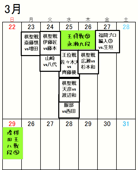 対局日・放送日が明確な棋戦