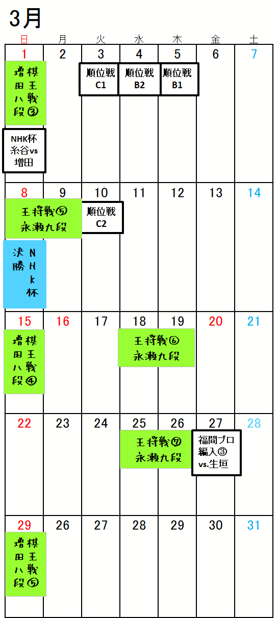 対局日・放送日が明確な棋戦