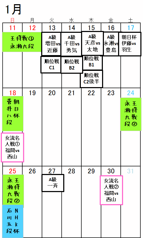 対局日・放送日が明確な棋戦