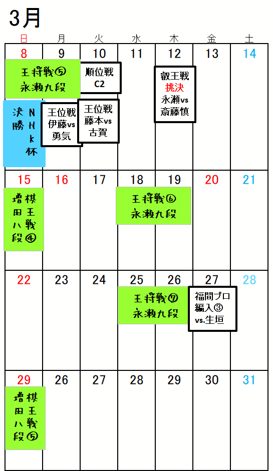 対局日・放送日が明確な棋戦
